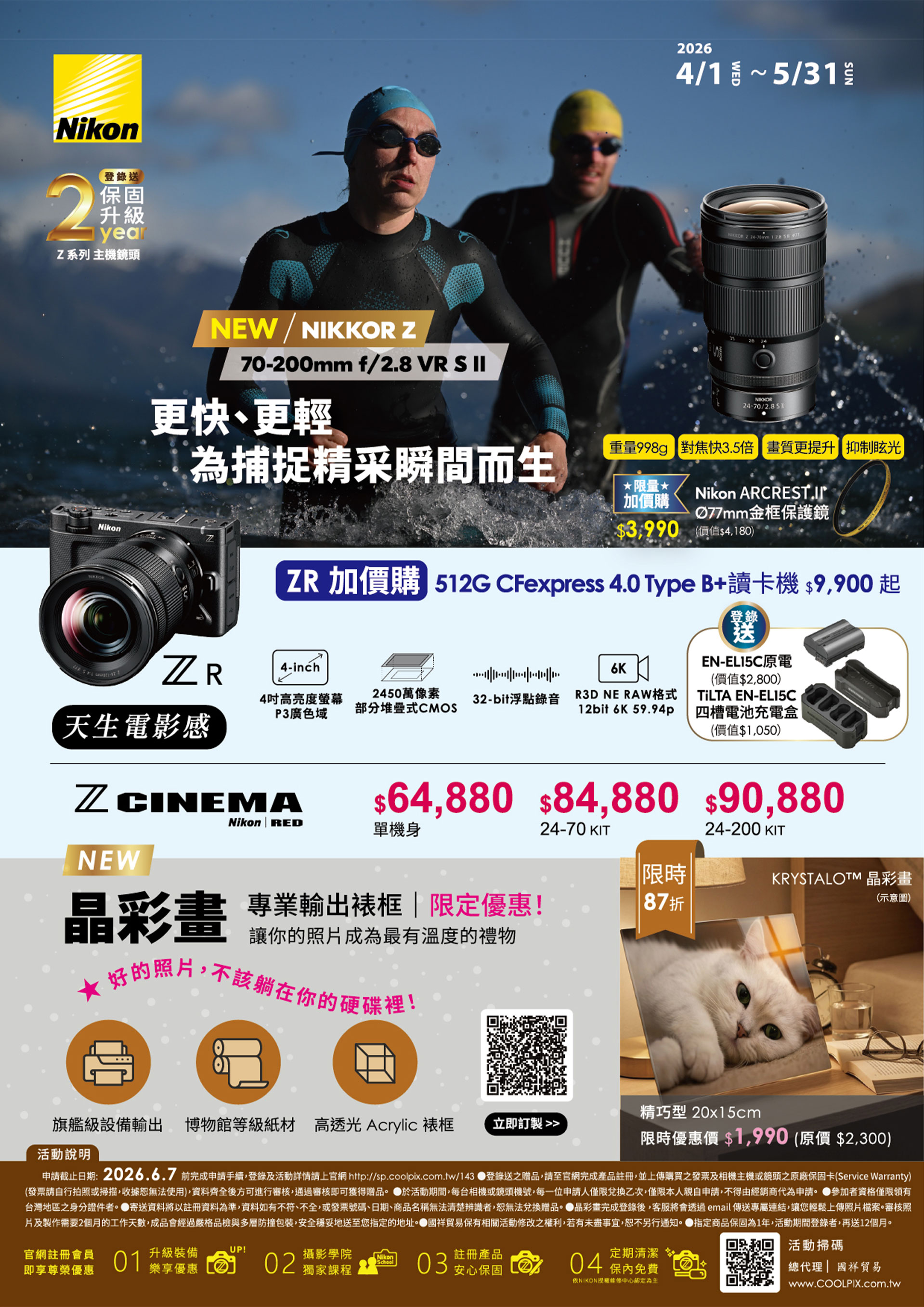🔥115/4/1~115/5/31🔥活動期間購買,Z系列鏡頭登錄贈保固升級2年 + PGY多功能包布