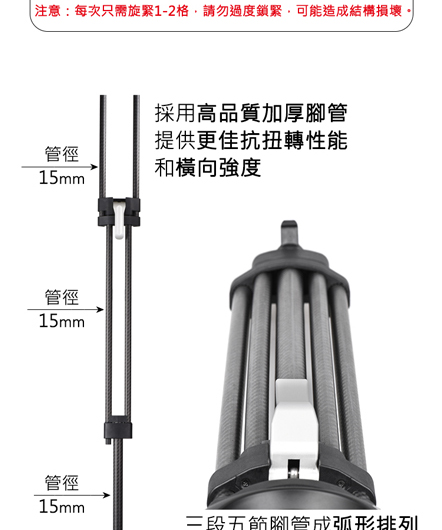 ✅ 高強度碳纖維腳管,穩定輕量