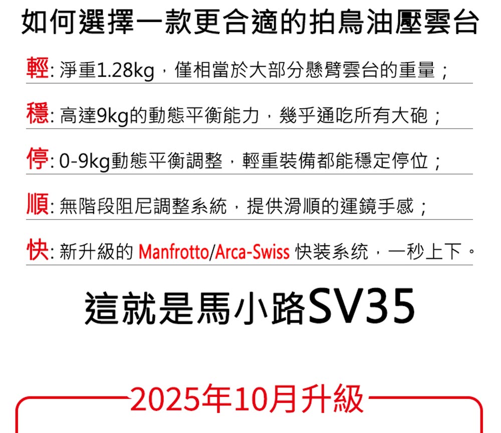 Marsace 馬小路 SV-35 PRO A版 獵隼攝錄影油壓雲台 飛羽 拍鳥 攝錄影專用 總代理公司貨