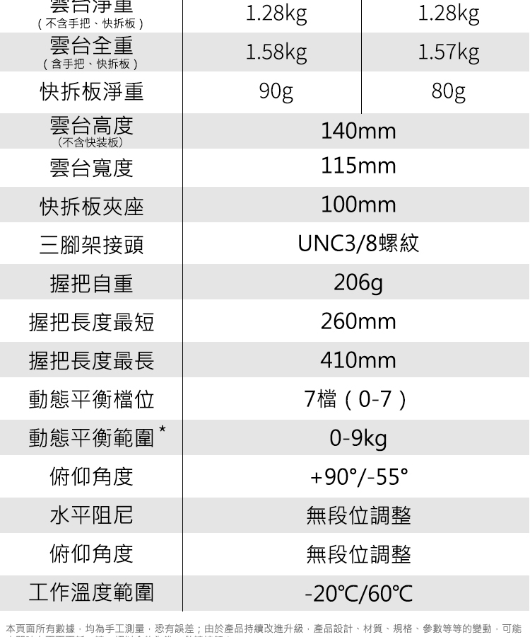 ✅動態平衡:可調 0-7段,舊版載重:1-8Kg 新版載重:0-9kg,所以輕重量的器材也可以用