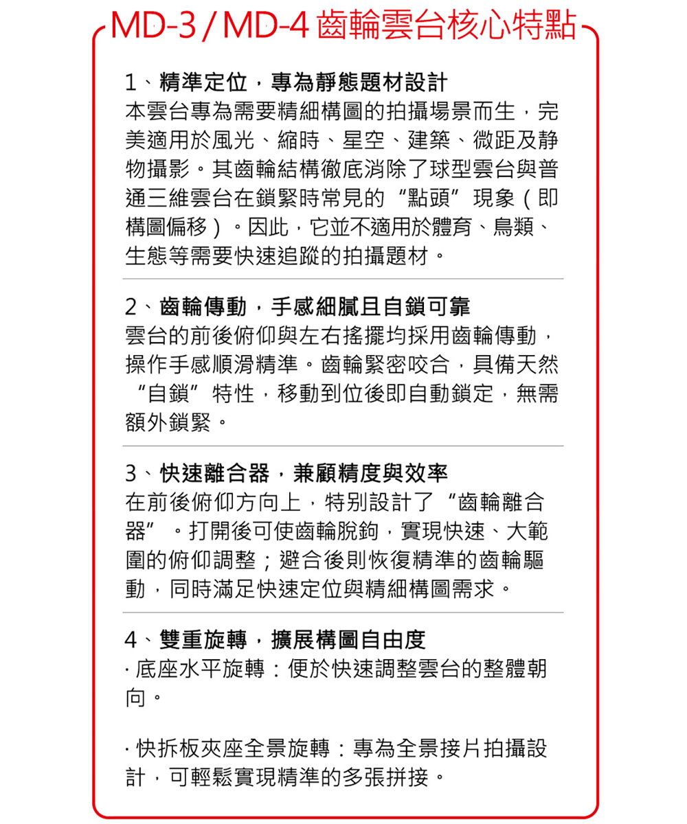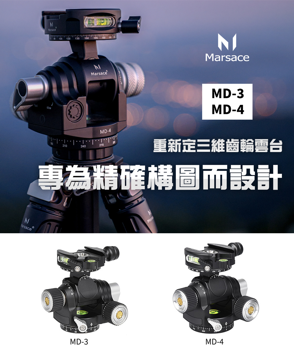 Marsace MD-4 精密齒輪雲台 三維雲台 微調雲台 雲海季 總代理公司貨