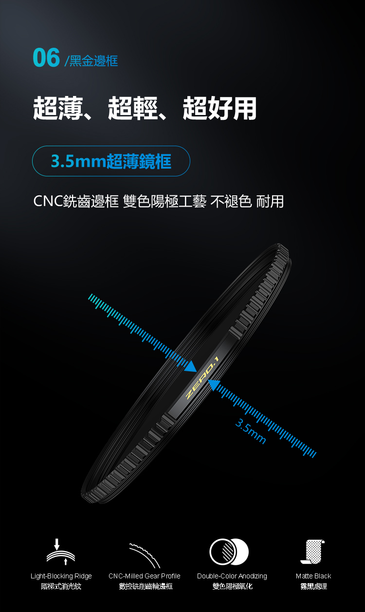採用奈米技術的多層鍍膜為濾鏡基片提供了極大的防護,並賦予其抗刮傷、防靜電、抗油墨、防水、防黴性能。