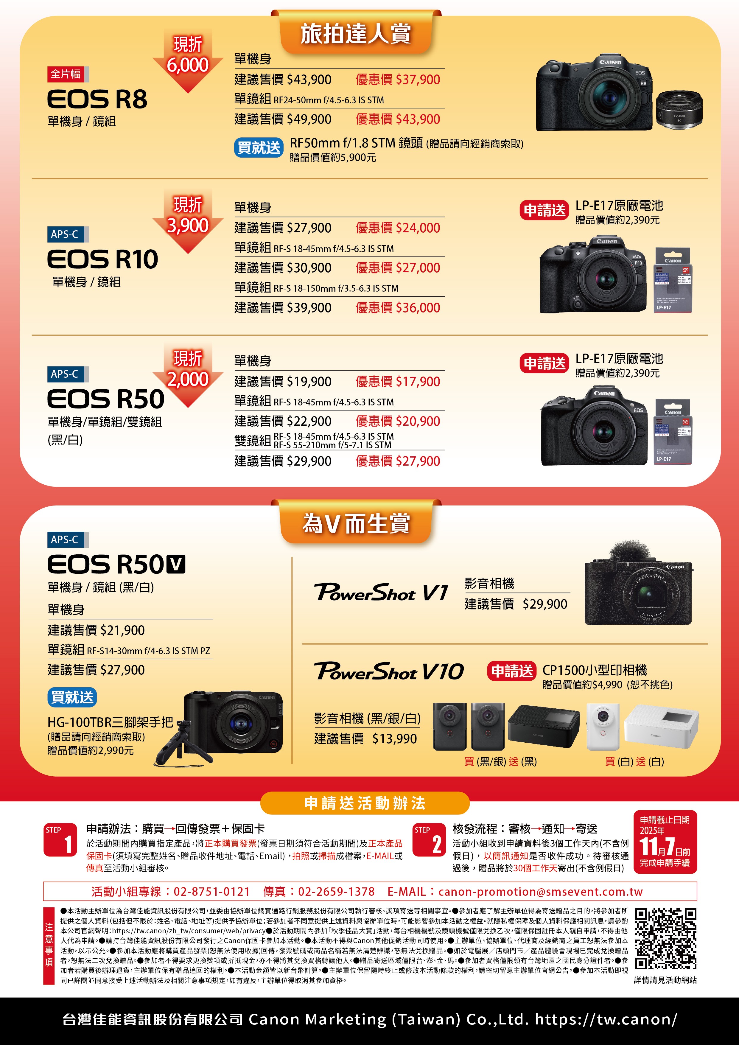 🔥114/9/1~114/10/31🔥\活動期間購買現折$3,900,登錄贈LP-E17原廠電池(價值NT2,390)+保固升級2年。